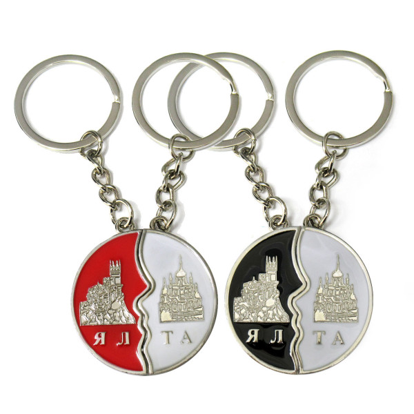 Брелок металлический с изображением Ласточкиного Гнезда и Форосской церкви.