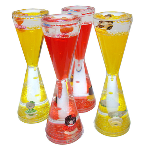 Песочные часы без песка сделаны из прозрачного пластика, с глицериновым наполнением.