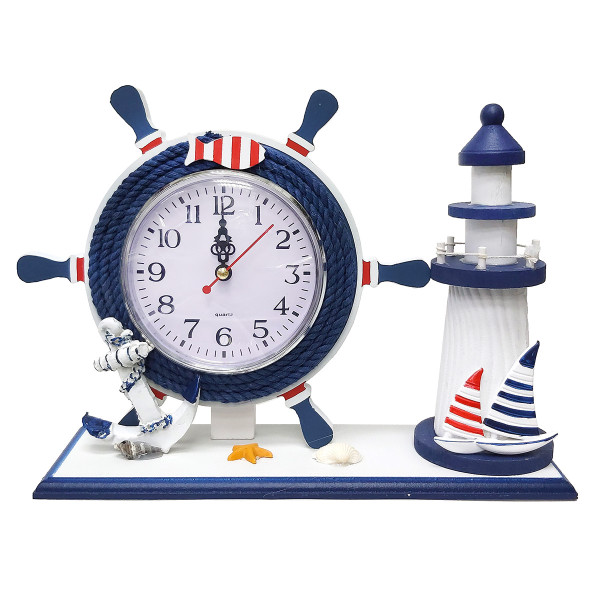 Часы настольные "Морская тема Штурвал-маяк" №H70A