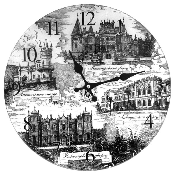 Часы стеклянные 35х35 "Дворцы Крыма" ч/б №CH34-3B