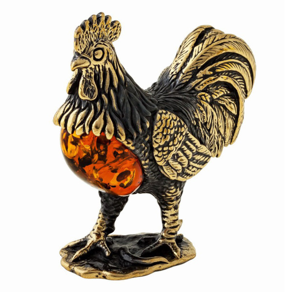 Фигурка из бронзы и янтаря "Петух на подставке" №1256-1K