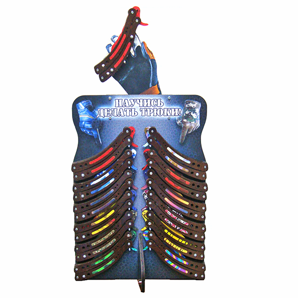 Нож-бабочка изготовлен из дерева. Цвета в ассортименте.