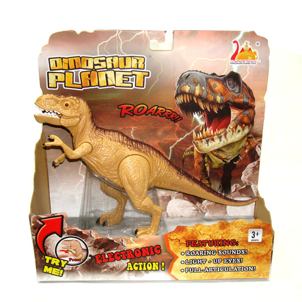 Динозавр на батарейках. Со звуком рычания и горящими глазами.