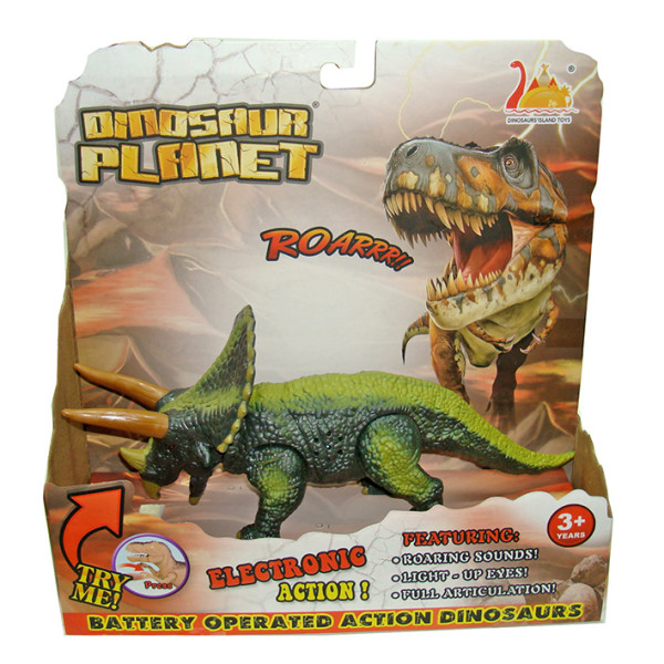 Динозавр на батарейках. Со звуком рычания и горящими глазами.