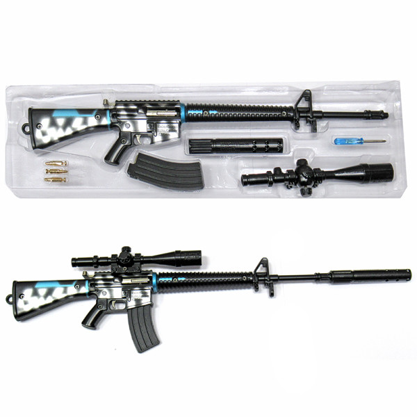 В набор входит: винтовка, магазин, прицел, глушитель, патроны.