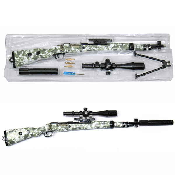 В набор входит: винтовка, прицелы, глушитель, ножки, отвертка.
