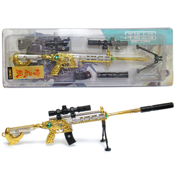 В набор входит: винтовка, ножки, 3 прицела, магазин, глушитель, отвертка.
