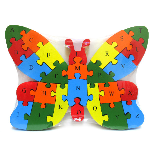 Пазл деревянный с цифрами и англ. алфавитом "Бабочка" №PZL-18