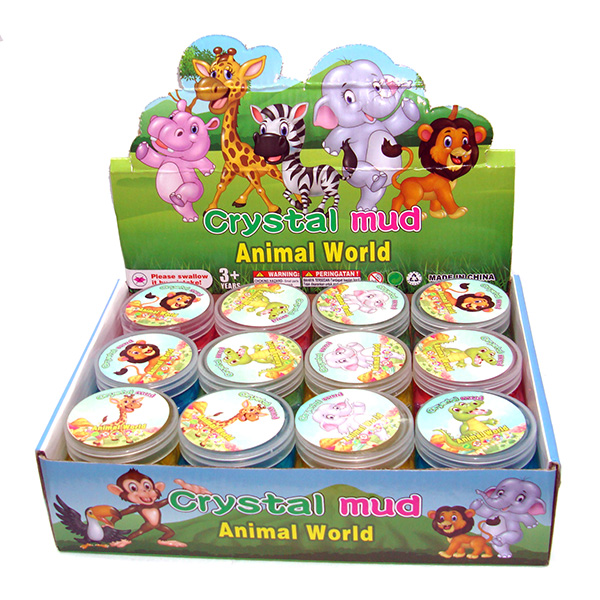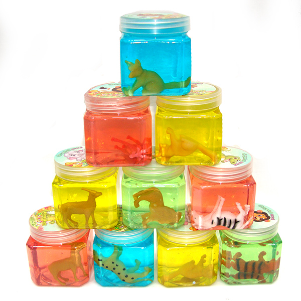 Слайм-лизун с игрушечной фигуркой разных животных внутри.