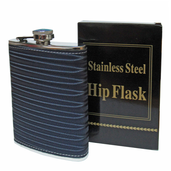 Фляга из металла в кож-заменителе в индивидуальной упаковке.