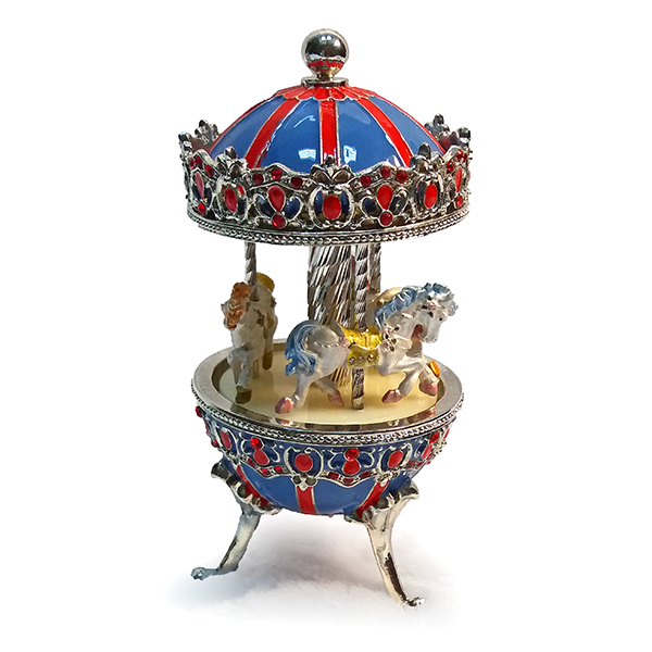 Карусель музыкальная в стиле Фаберже. Изготовлена из металла. Украшена стразами.