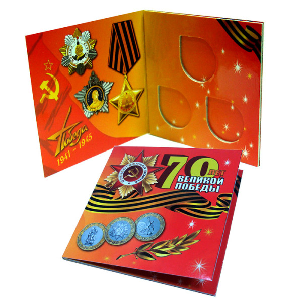 Альбом для 3х 10-ти рублевых коллекционных биметалических монет посвященных 70-летию Великой Победы в Великой Отечественной войне 1941-1945 г.