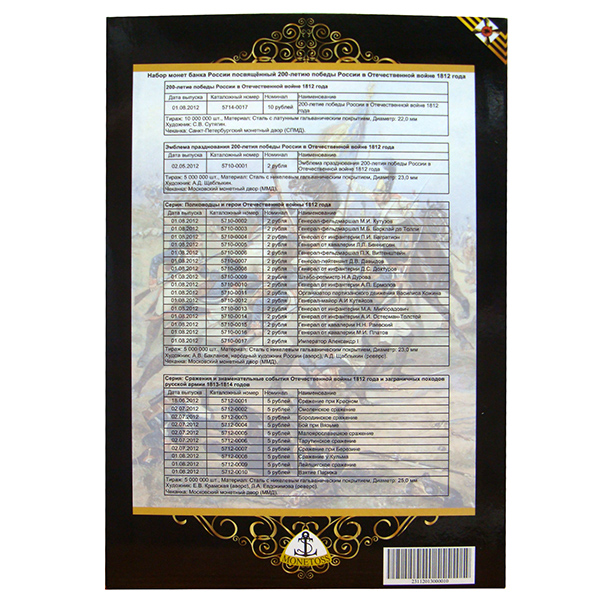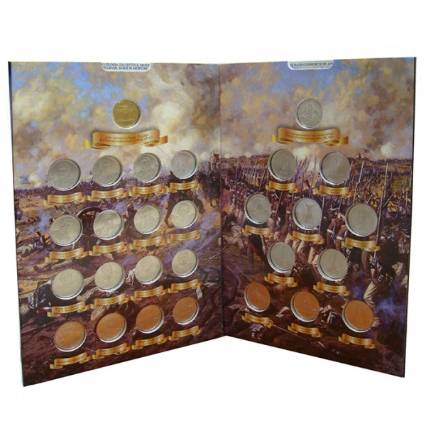 Коллекционный альбом с полным комплектом монет Банка России (28 штук), посвященный 200-летию победы России в Отечественной войне 1812 года.