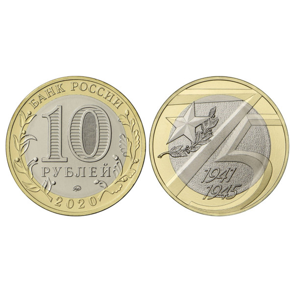 10 рублей 2020 года «75-летие Победы советского народа в Великой Отечественной войне 1941–1945 гг.»