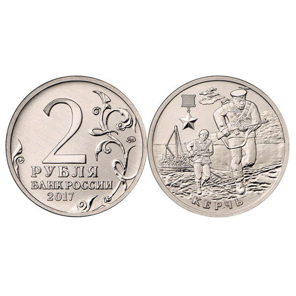 Памятная юбилейная монета из не цветных металлов серии «Города Герои» номиналом 2 рубля – «Керчь» выпущена Банком России 20 апреля 2017 года.