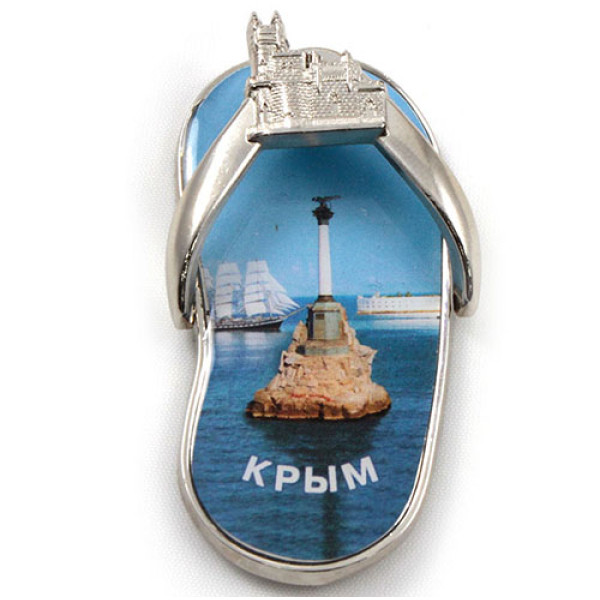 Магнит из металла в форме тапка с изображением Памятника Затопленным кораблям.
