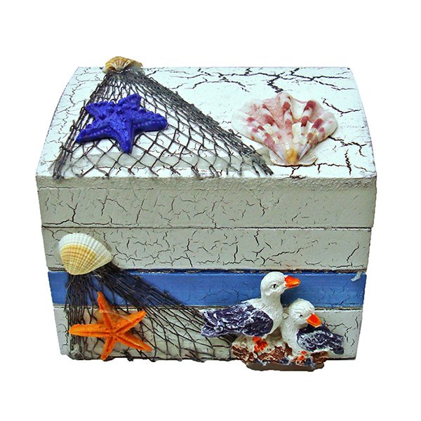 Шкатулка из дерева с элементами декора морской тематики.