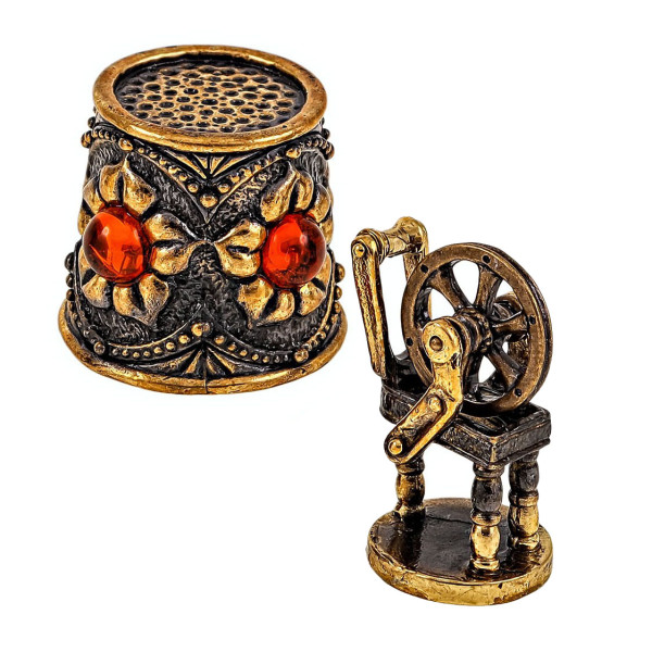 Наперсток из бронзы и янтаря "Ажурный с веретеном" №1904-4K
