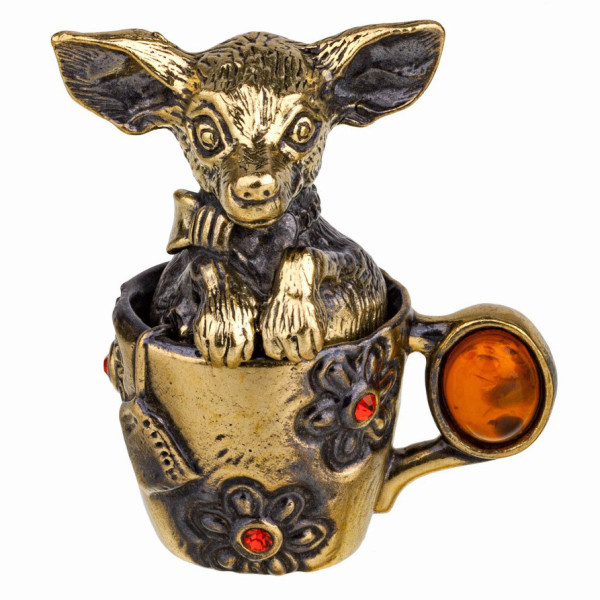 Наперсток из бронзы и янтаря "Чихуа-Хуа в чашке" №803K