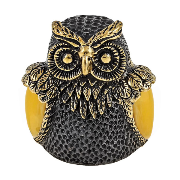Наперсток из бронзы и янтаря "Сова Сипуха" №1805B