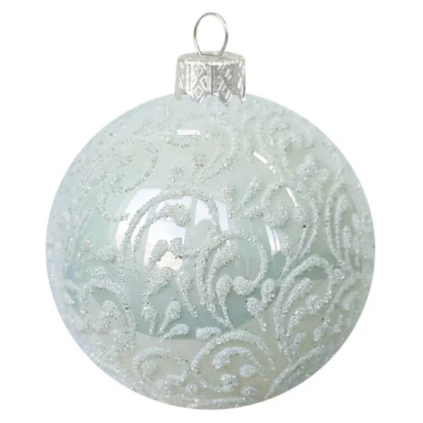 Ёлочная игрушка Шар "Вьюнок-веточка морозная" белый в упаковке №KU-65-18470-1