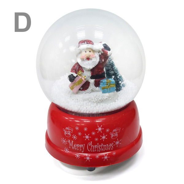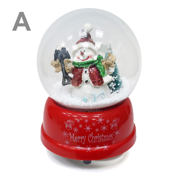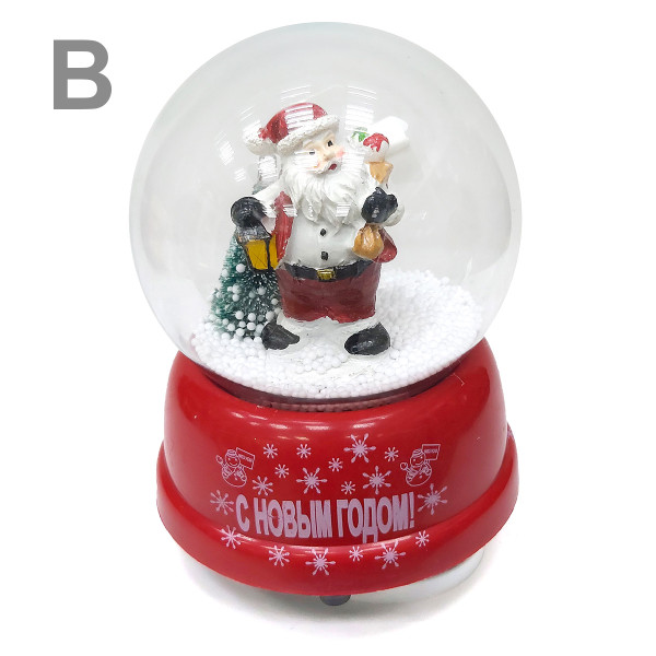 При заводе музыкального механизма, сфера вращается, играет мелодия и разгоняется снег по сфере.