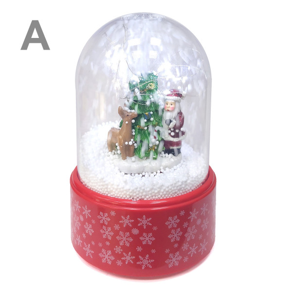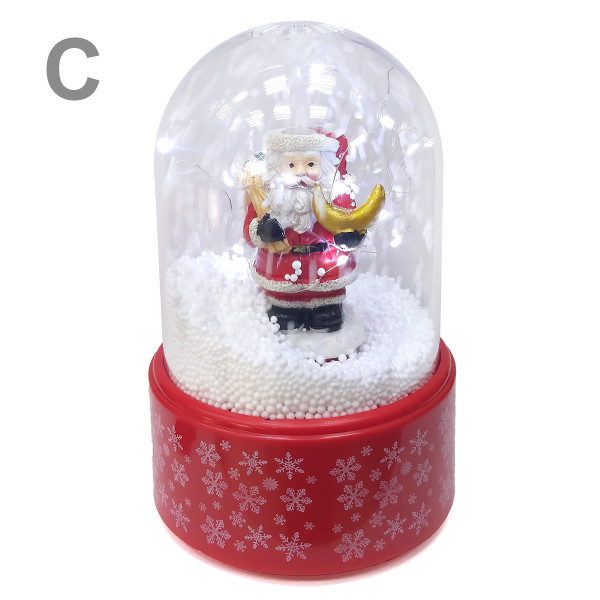 При включении, сфера подсвечивается, играет мелодия и разгоняется снег по сфере.
