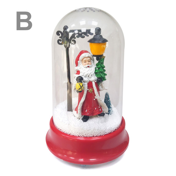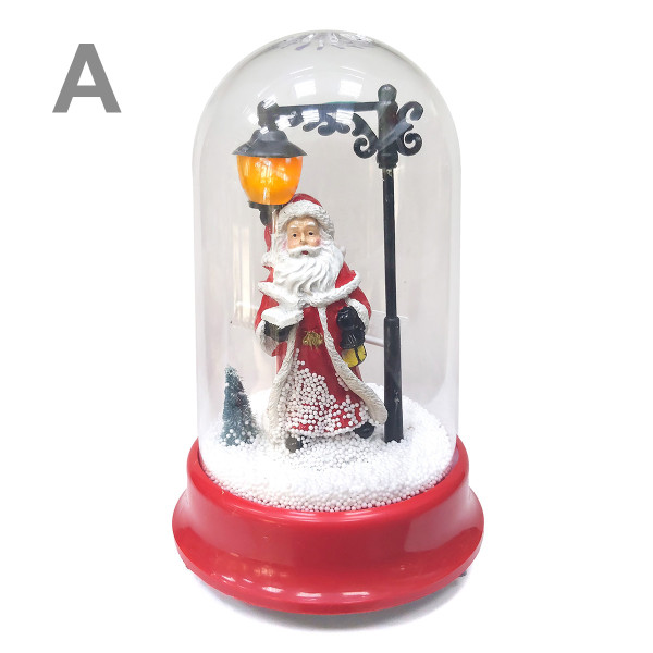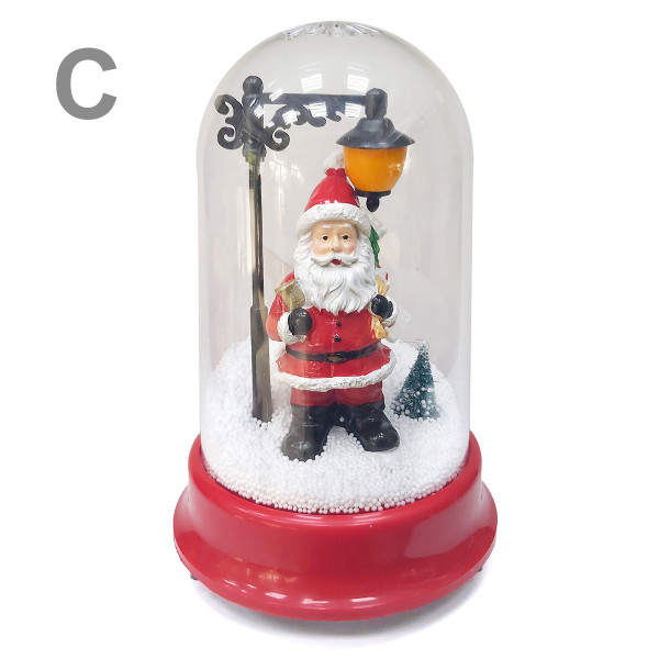 При включении играет мелодия? светится, разгоняется снег по сфере и вращается.