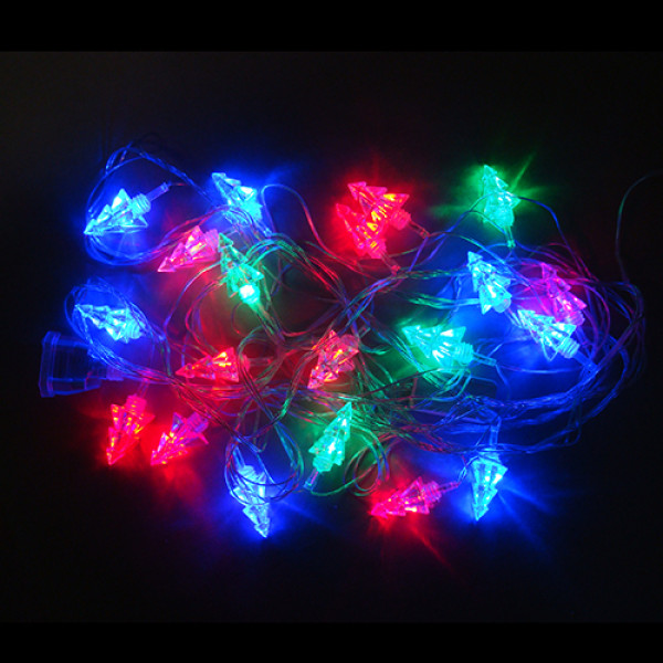 Светодиодная гирлянда состоит из трех метрового прорезиненного провода, на котором расположены ёлочки. В каждой ёлочке установлены светодиодные кристаллы разных цветов, которые при включении гирлянды в электрическую сеть плавно переливаются цветами. Есть возможность подключения гирлянд на один кабель питания.