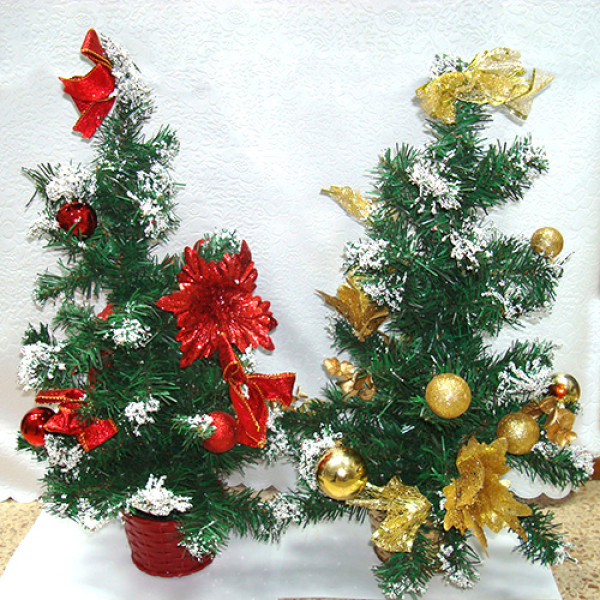 Ёлочка искусственная, настольная, украшена шариками, бантиками в корзинке, станет прекрасным украшением новогоднего интерьера.