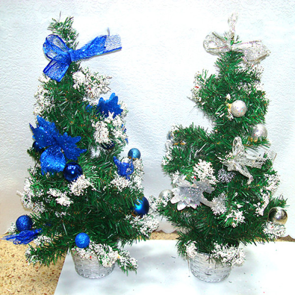 Ёлочка искусственная, настольная, украшена шариками, бантиками в корзинке, станет прекрасным украшением новогоднего интерьера.