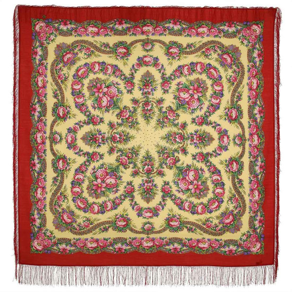 Платок шерстяной с шелковой бахромой "Молодушка", вид 5.