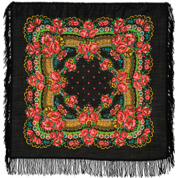 Платок шерстяной с шерстяной бахромой "Маков цвет".