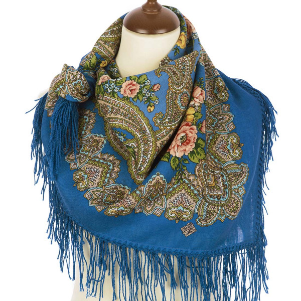 Платок шерстяной с шерстяной бахромой "Озерный край".