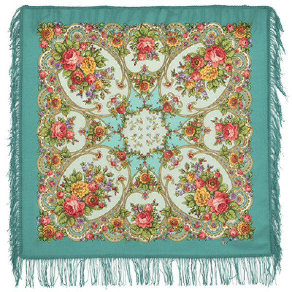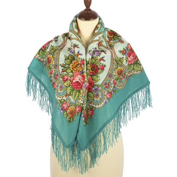 Платок шерстяной с шерстяной бахромой "Нежные обьятия".