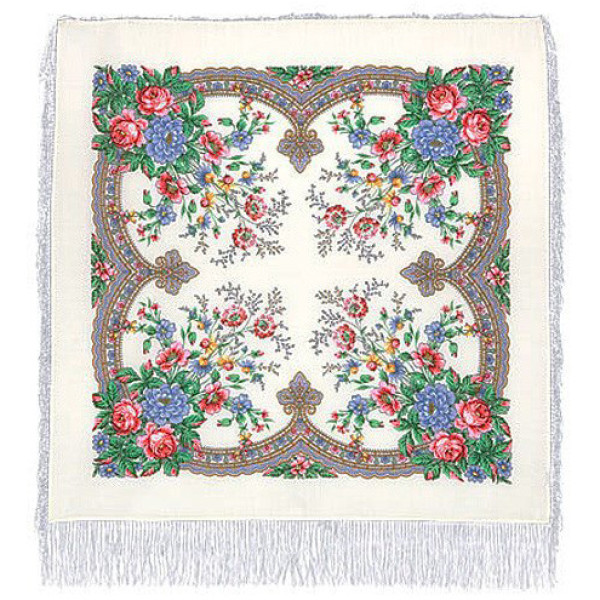 Платок шерстяной с шелковой бахромой "Ласковое утро", вид 1.