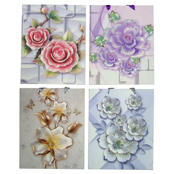 Пакет изготовлен из качественного картона, имеет прорезные ручки из лент.