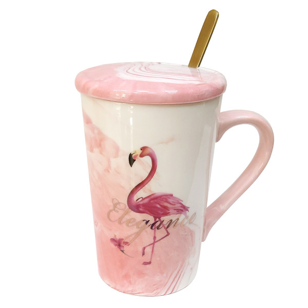 Чашка фарфоровая Elegance "Фламинго" с ложечкой и крышечкой №7949-2