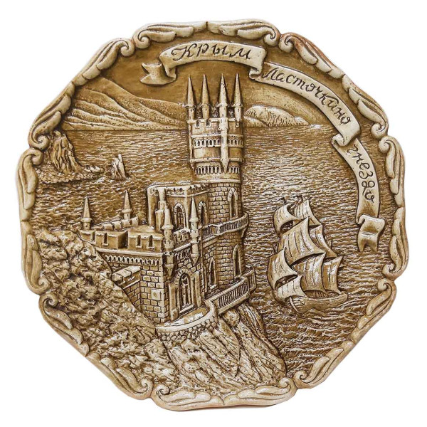Тарелка из гипса лакированная с изображением Ласточкиного Гнезда.