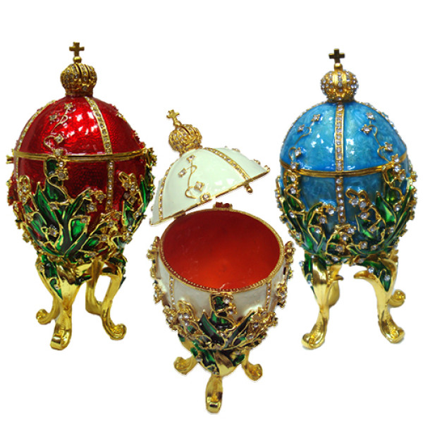 Яйцо-шкатулка под Фаберже. Изготовлено из метала. Украшено стразами.