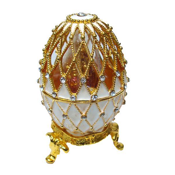 Яйцо-шкатулка под Фаберже, внутри с храмом Спас на Крови на магните. Изготовлено из металла. Украшено стразами.