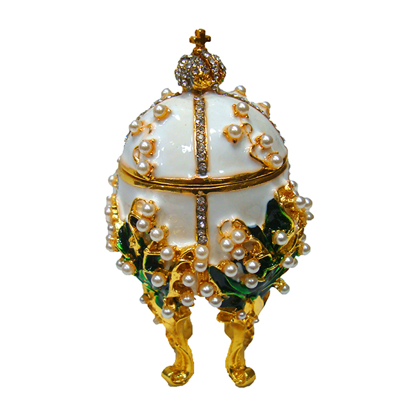 Яйцо-шкатулка под Фаберже. Изготовлено из металла. Украшено стразами.