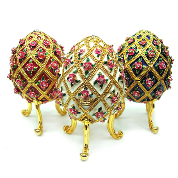 Яйцо-шкатулка под Фаберже. Изготовлено из металла. Украшено стразами.