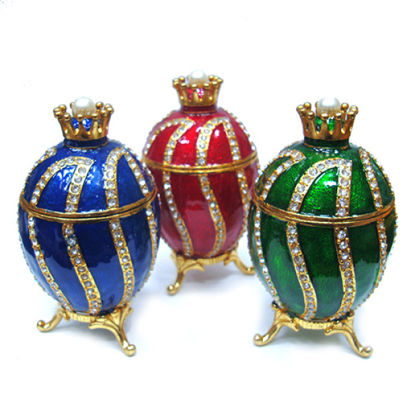 Яйцо-шкатулка под Фаберже. Изготовлено из металла. Украшено стразами.