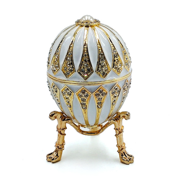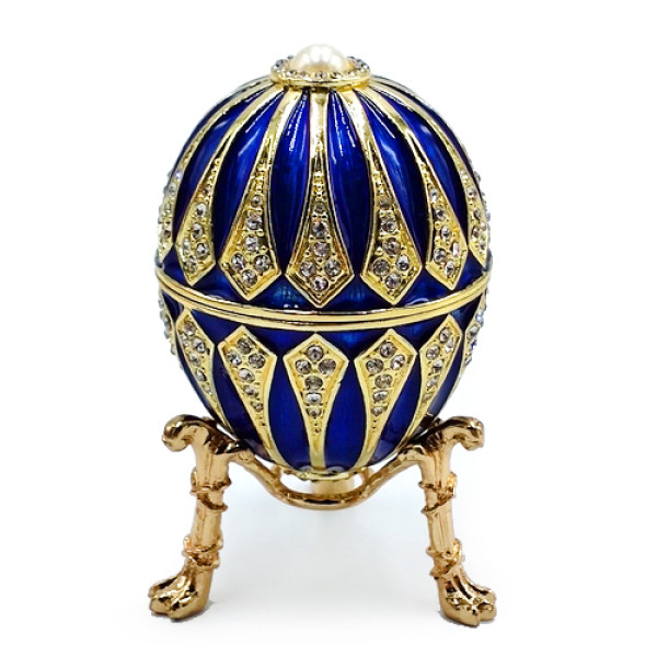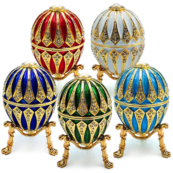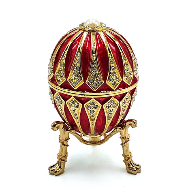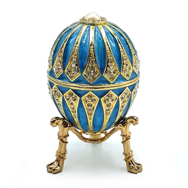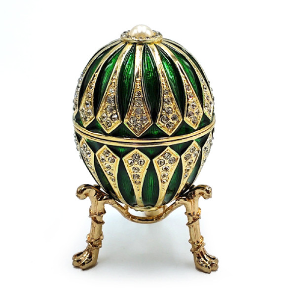 Яйцо-шкатулка под Фаберже. Изготовлено из металла, покрыто цветной эмалью, украшено стразами.