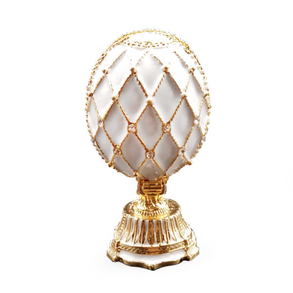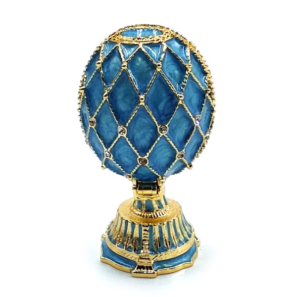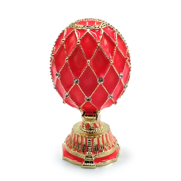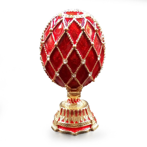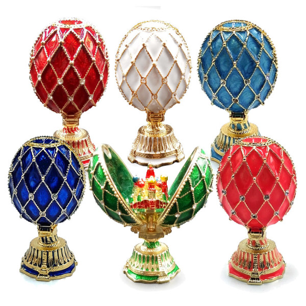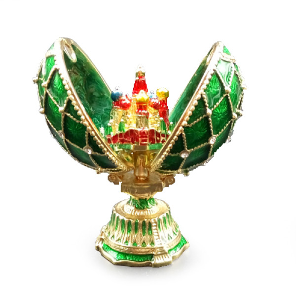 Яйцо-шкатулка под Фаберже. Внутри с храмом Василия Блаженного. Изготовлено из металла, покрыто цветной эмалью, украшено стразами.