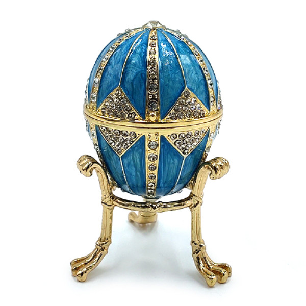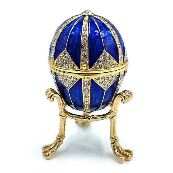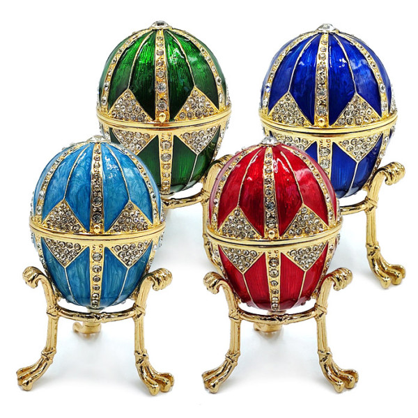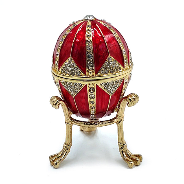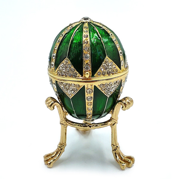 Яйцо-шкатулка под Фаберже. Изготовлено из металла, покрыто цветной эмалью, украшено стразами.