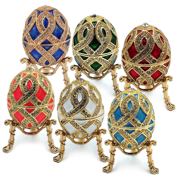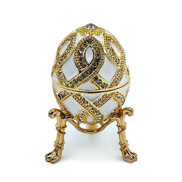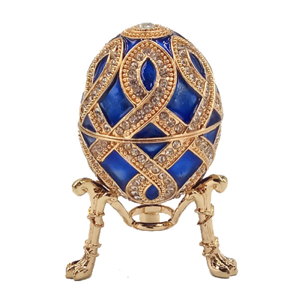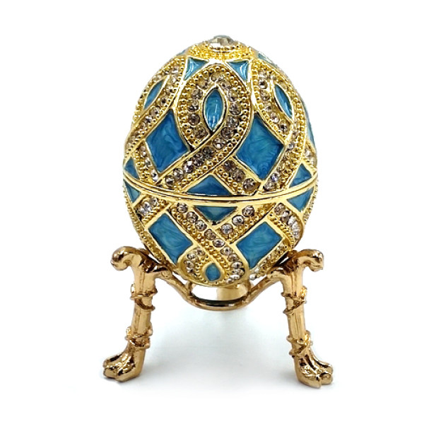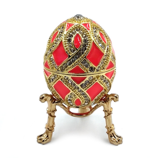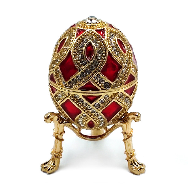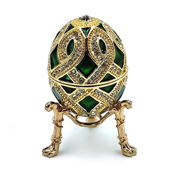 Яйцо-шкатулка под Фаберже. Изготовлено из металла, покрыто цветной эмалью, украшено стразами.