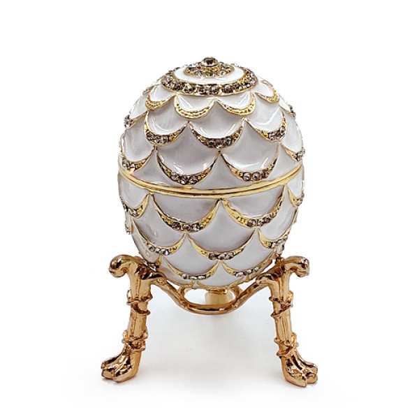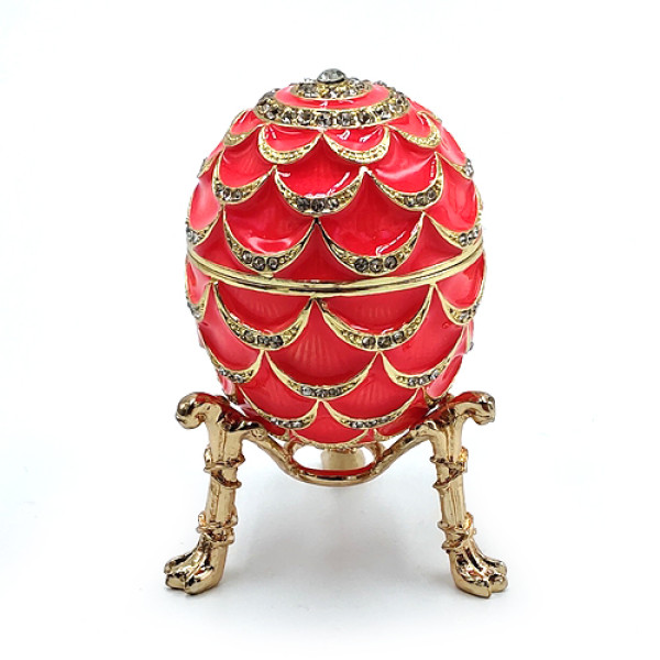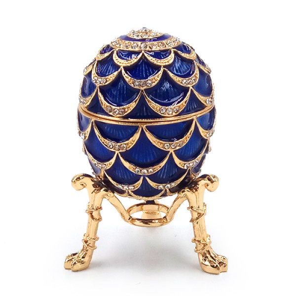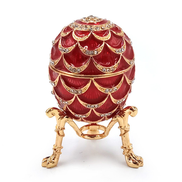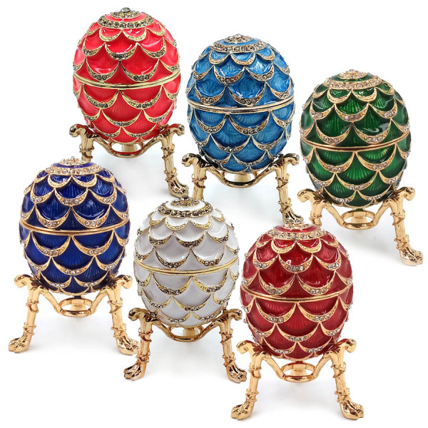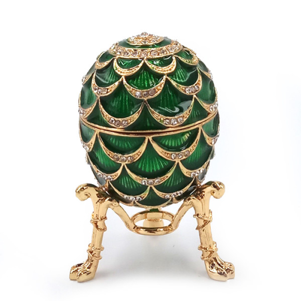 Яйцо-шкатулка под Фаберже. Изготовлено из металла, покрыто цветной эмалью, украшено стразами.