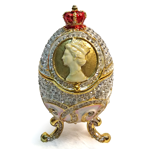 Яйцо-шкатулка под Фаберже. Изготовлено из металла. Украшено стразами.